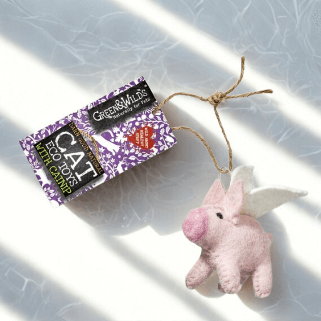 Piggy Sue cat toy is a quirky flying pig cat toy packed with catnip and eco-friendly charm.